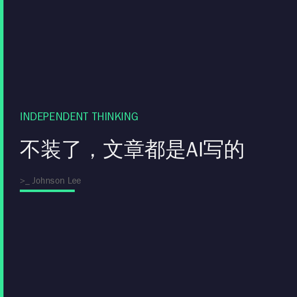 The value of a good article lies in its perspective, its insight, its mental framework. AI can’t fabricate those – it just helps me turn what I’ve already thought through into a format readers can consume.